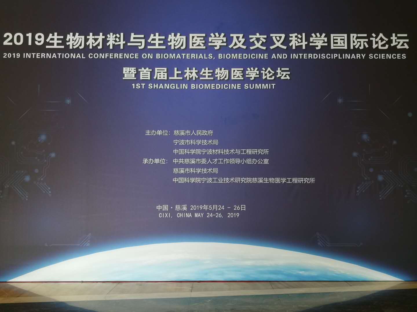 為了更好地探討生物材料與生物醫(yī)學(xué)在相關(guān)領(lǐng)域的最新研究進(jìn)展和應(yīng)用技術(shù),由慈溪市人民政府、中國科學(xué)院寧波材料技術(shù)與工程研究所、寧波市科學(xué)技術(shù)局主辦的“2019生物材料與生物醫(yī)學(xué)及交叉科學(xué)國際論壇暨首屆上林生物醫(yī)學(xué)論壇”于2019年5月24日至26日在美麗的東海港口城市寧波慈溪召開。