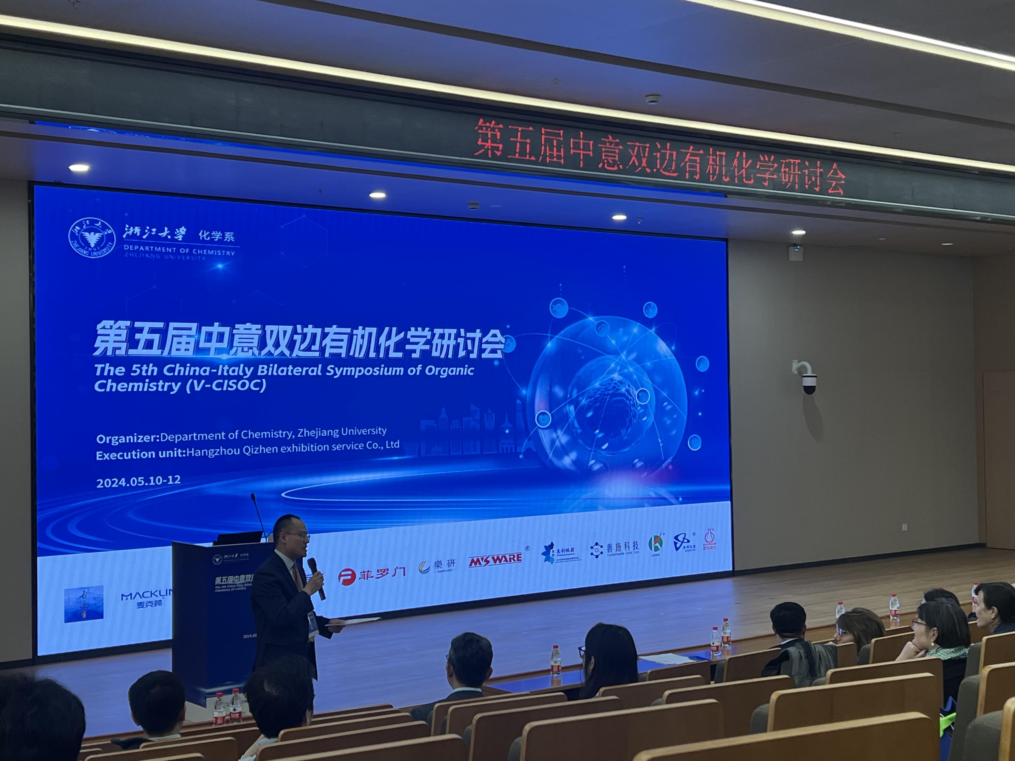 第五屆中意雙邊有機化學(xué)研討會在5.11-12于浙江大學(xué)紫金港校區(qū)舉行,與會人員是來自中意雙方有機合成領(lǐng)域知名專家,參會人員規(guī)??蛇_200人左右,會議相關(guān)內(nèi)容主要包括有機合成新催化劑、新方法和新策略的發(fā)展,功能分子的精準(zhǔn)創(chuàng)制及應(yīng)用。