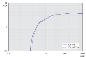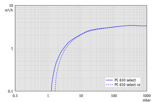 PC 610 select - 50 Hz下的抽氣曲線 (10升容積) |