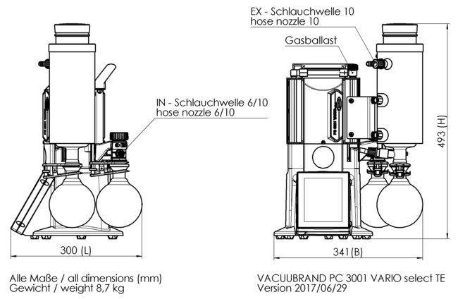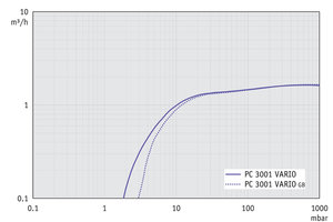 PC 3001 VARIO select TE - 抽氣曲線 (10升容積)