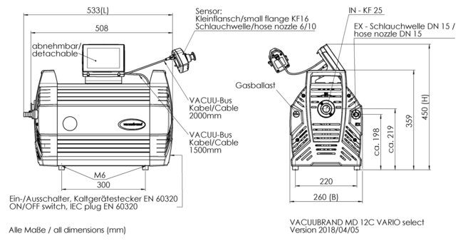 MD 12C VARIO select - 抽氣曲線 (100升容積)