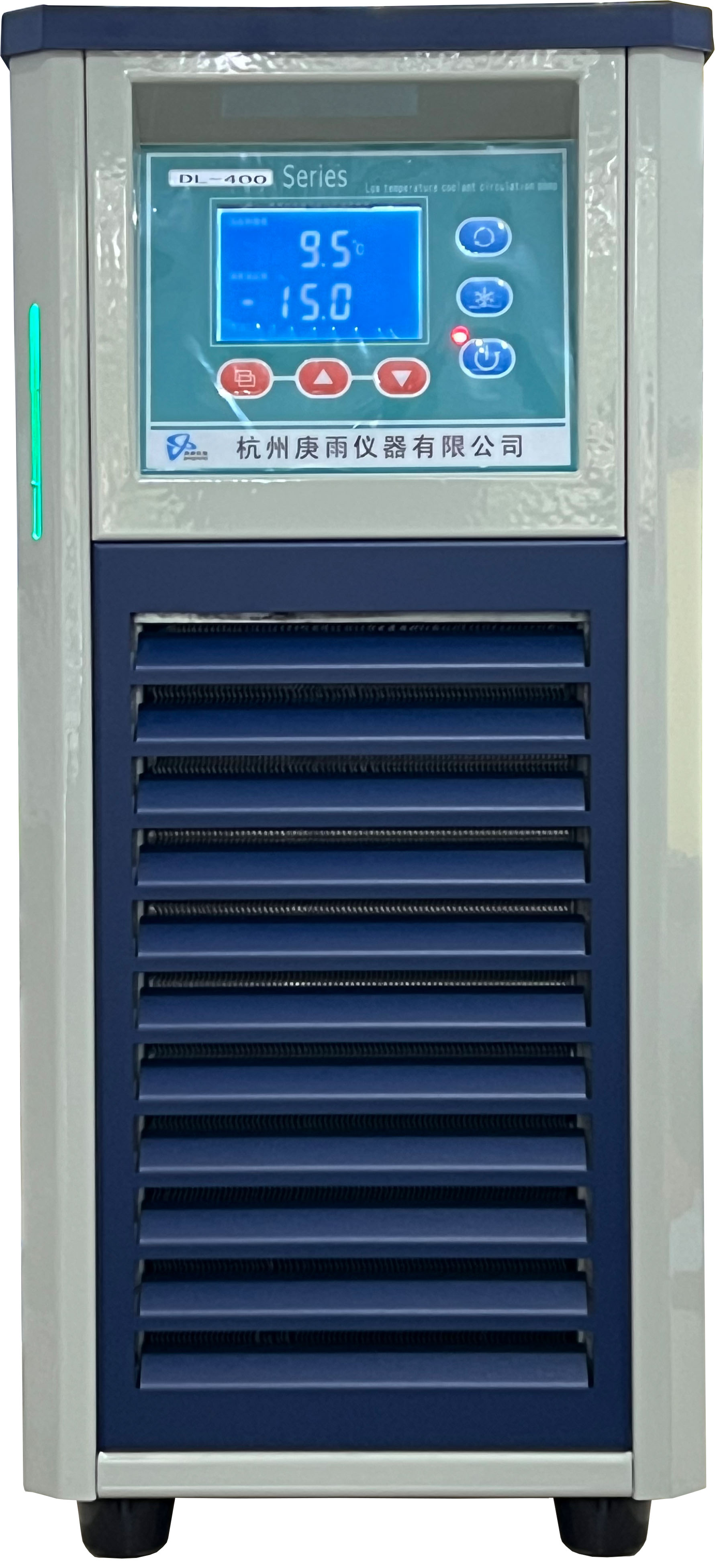 8.采用風(fēng)冷式全封閉壓縮機(jī)組制冷及微機(jī)智能控制系統(tǒng),提供低溫循環(huán)冷卻液,以滿足用冷卻水及低溫液體去降溫或恒溫儀器的需要。