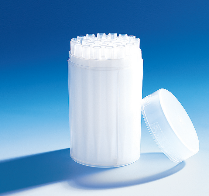 PP盒子,帶緊貼的蓋子,裝滿5 ml槍頭 (28 pc.)或10 ml槍頭 (18 pc.)。盒子可在121 ℃下滅菌處理,符合 DIN EN 285.